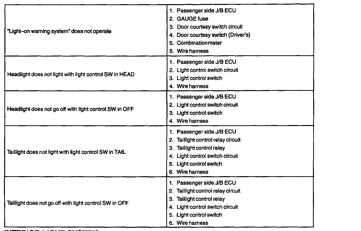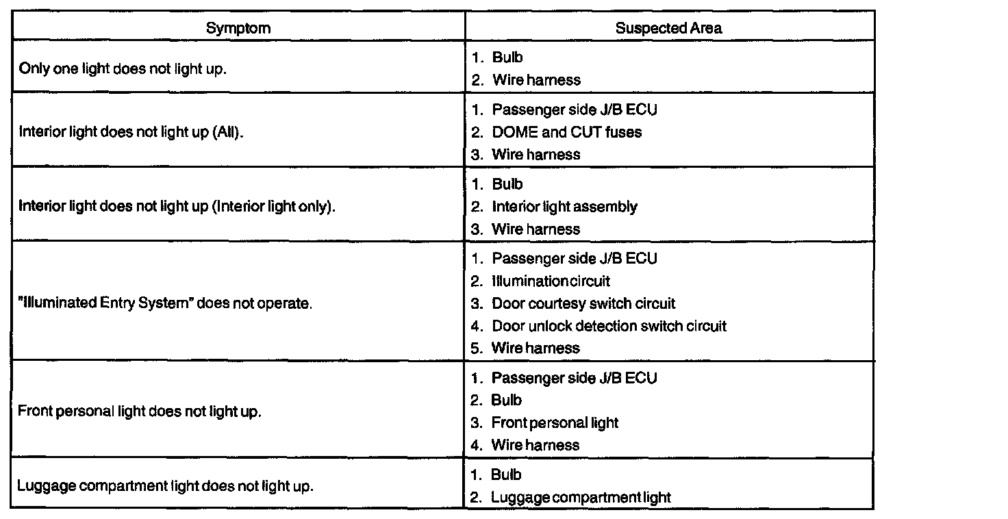 Problem Symptoms Table - Interior Light System:
