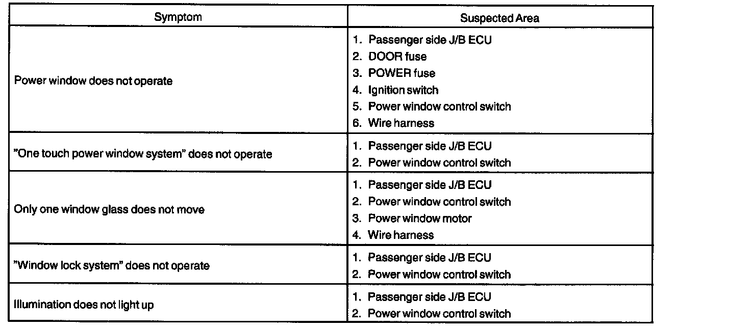 Problem Symptoms Table - Power Window Control System: