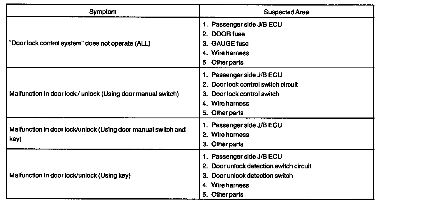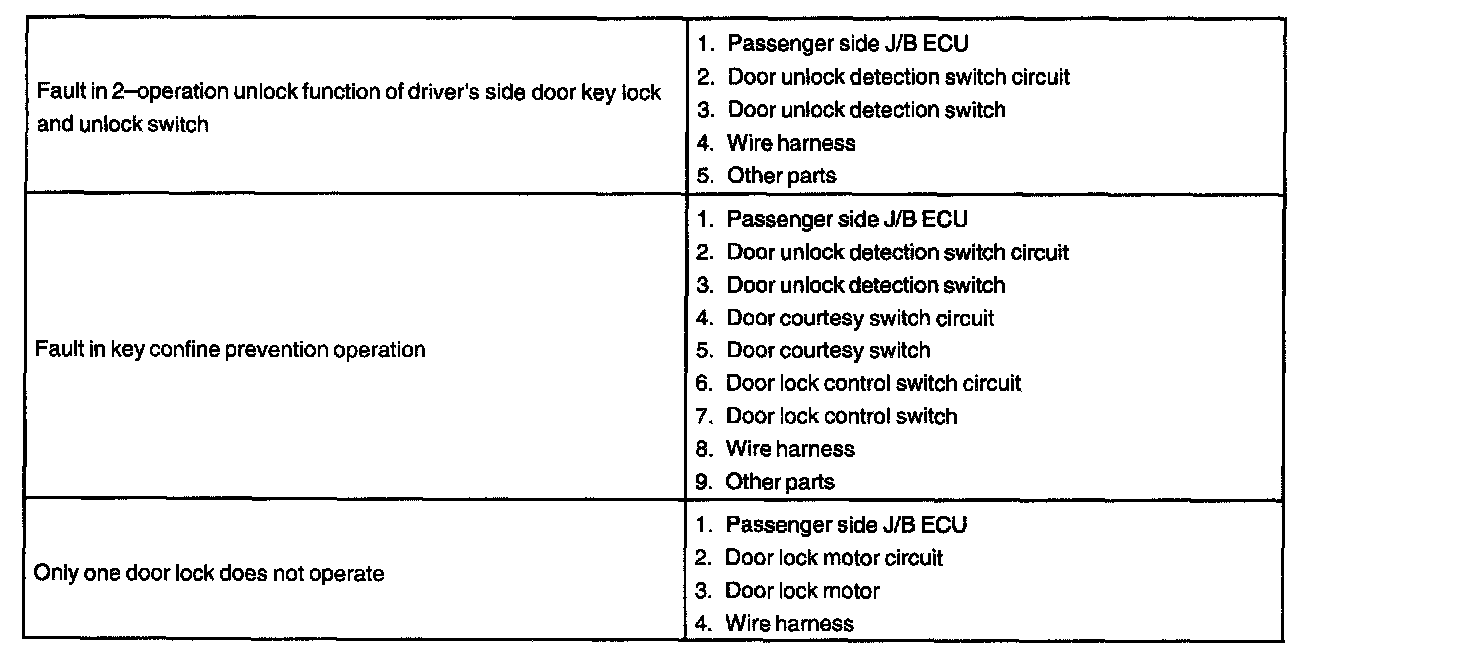 Problem Symptoms Table - Power Door Lock Control System: