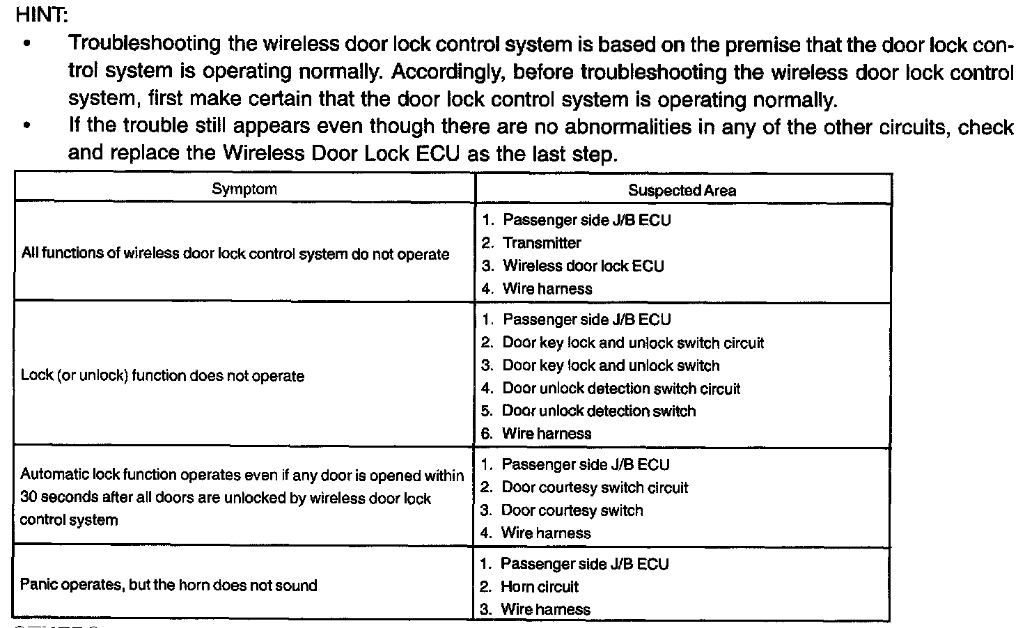 Problem Symptoms Table - Power Door Lock Control System (Continued):