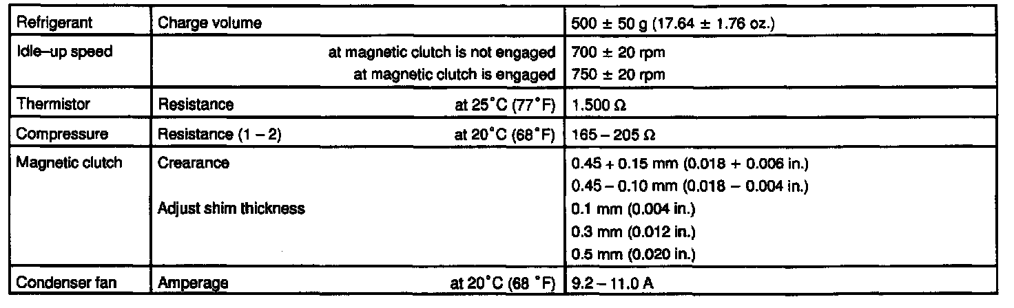 AIR CONDITIONING SERVICE DATA: