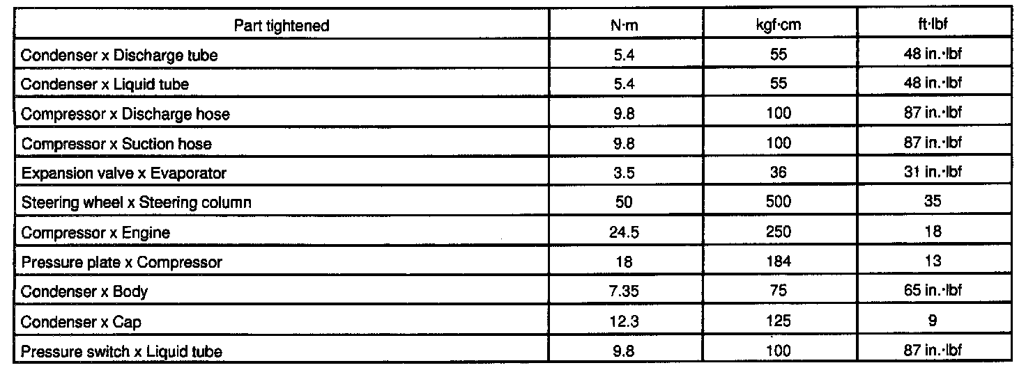 TORQUE SPECIFICATION: