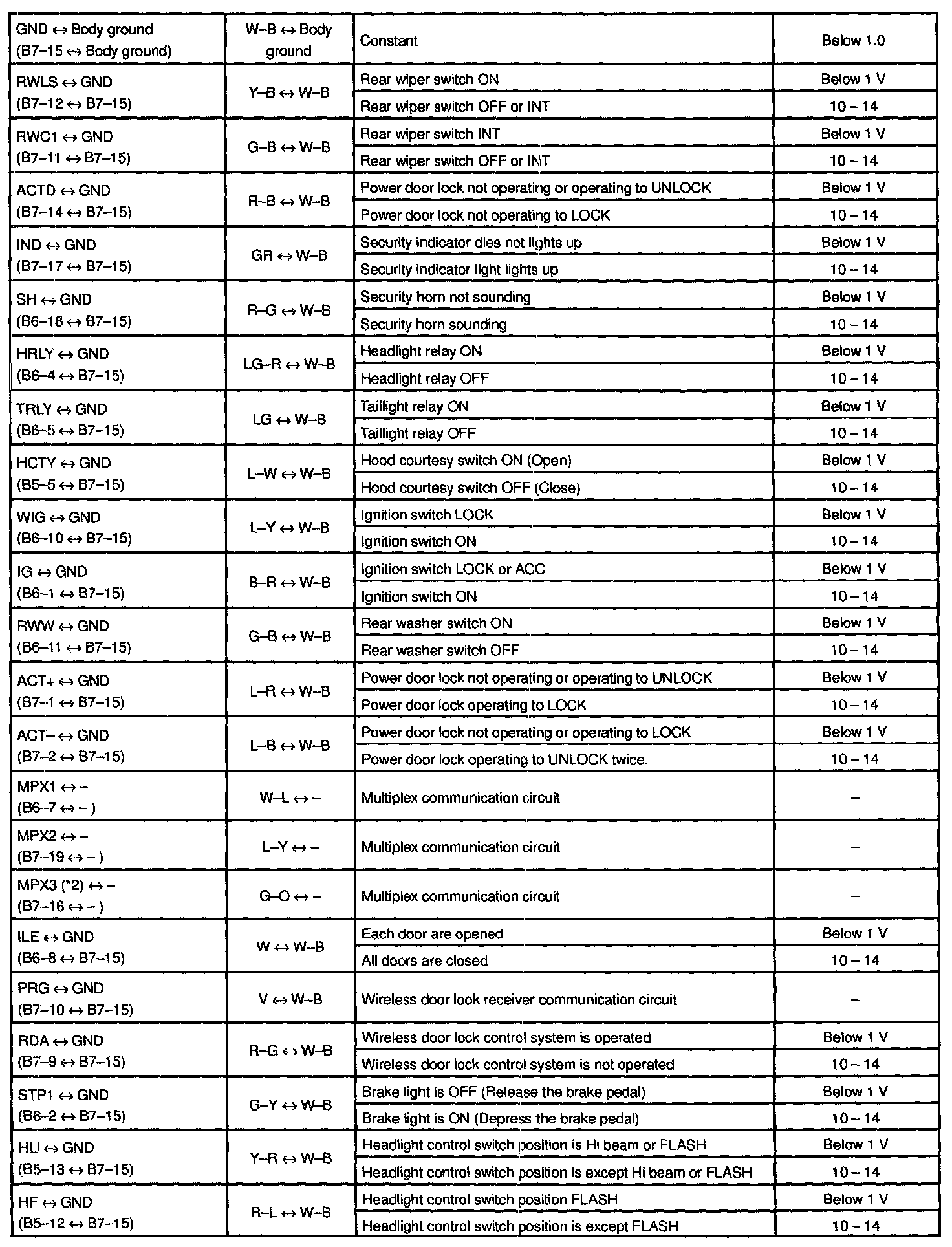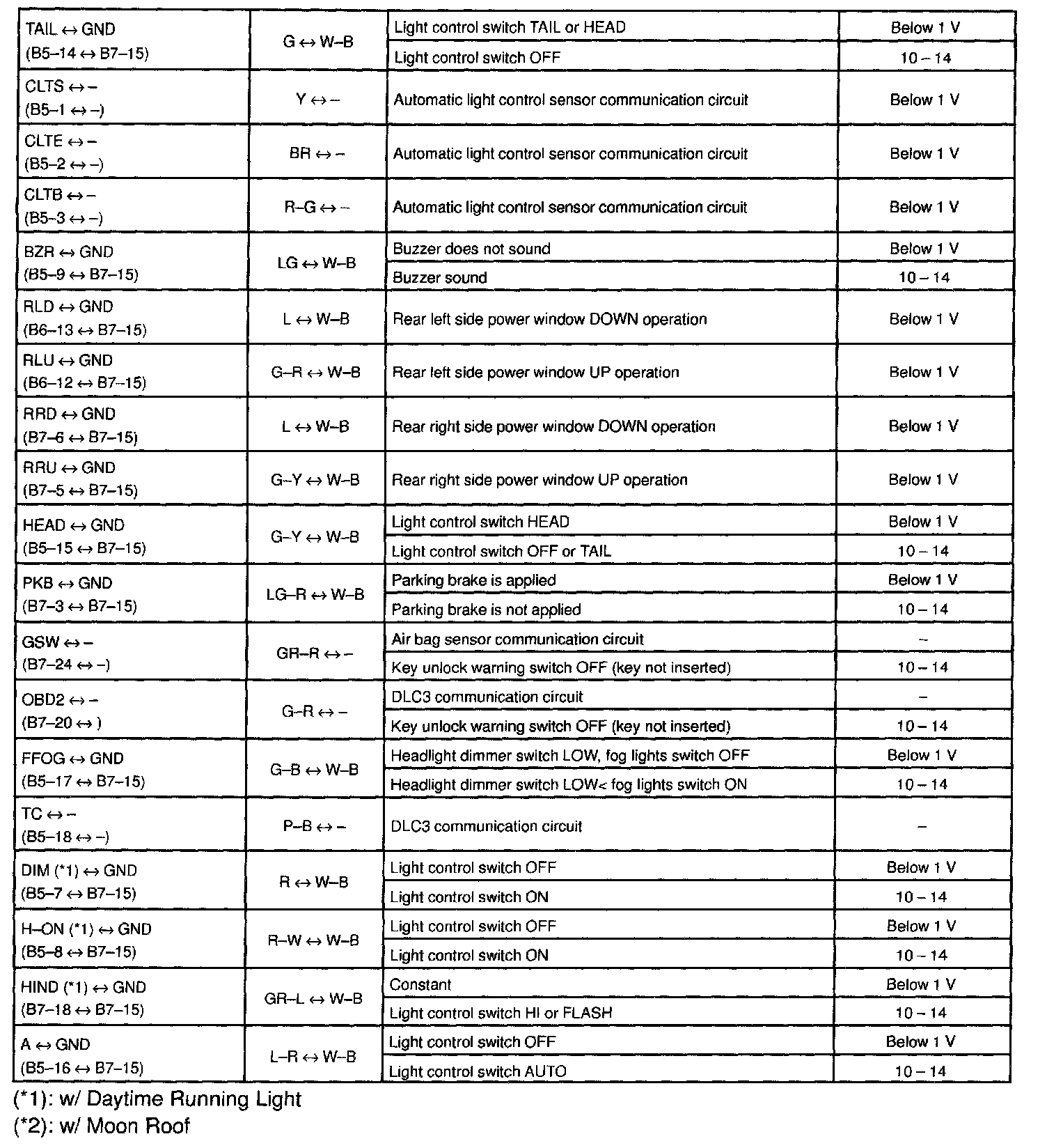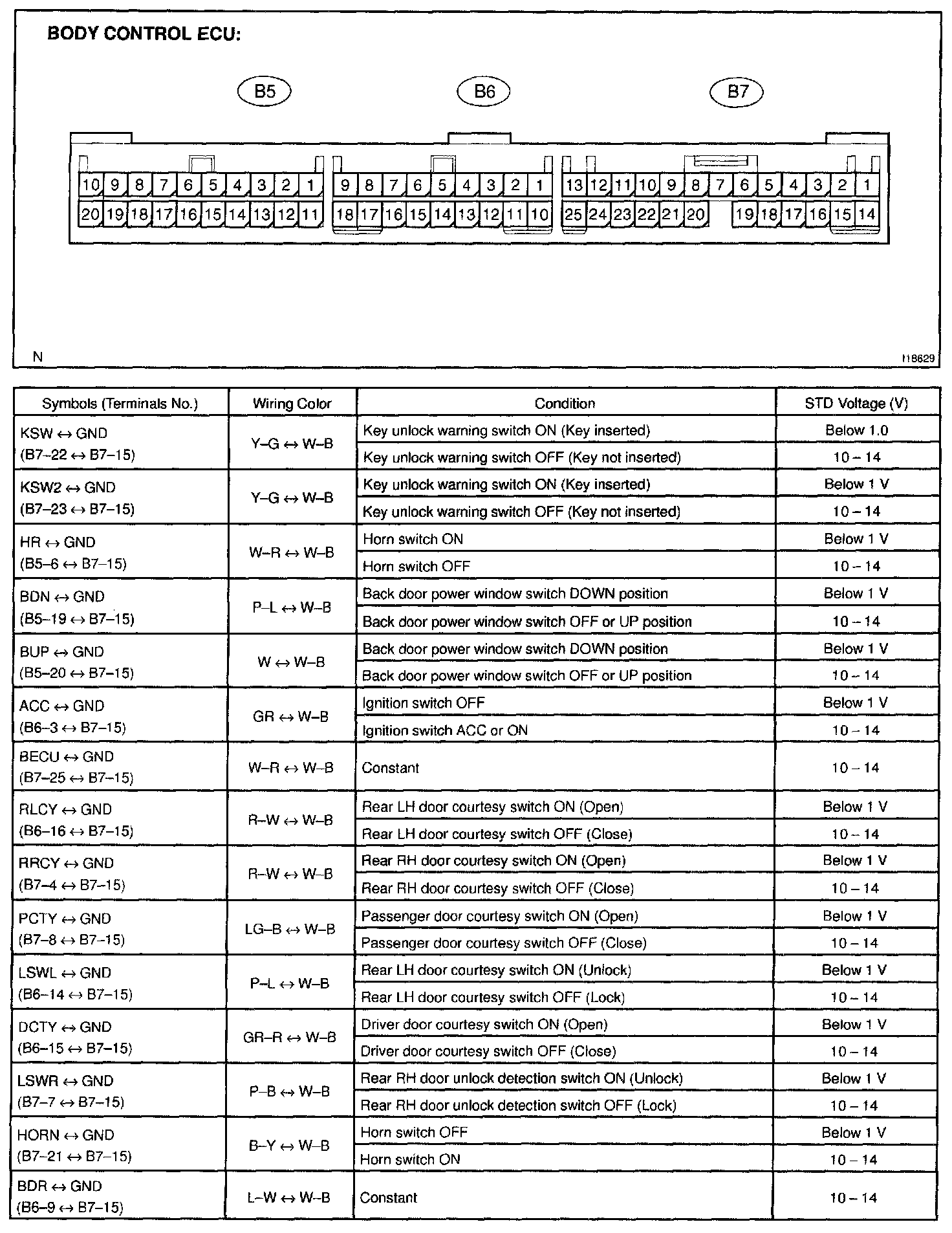 Pinout Values and Diagnostic Parameters