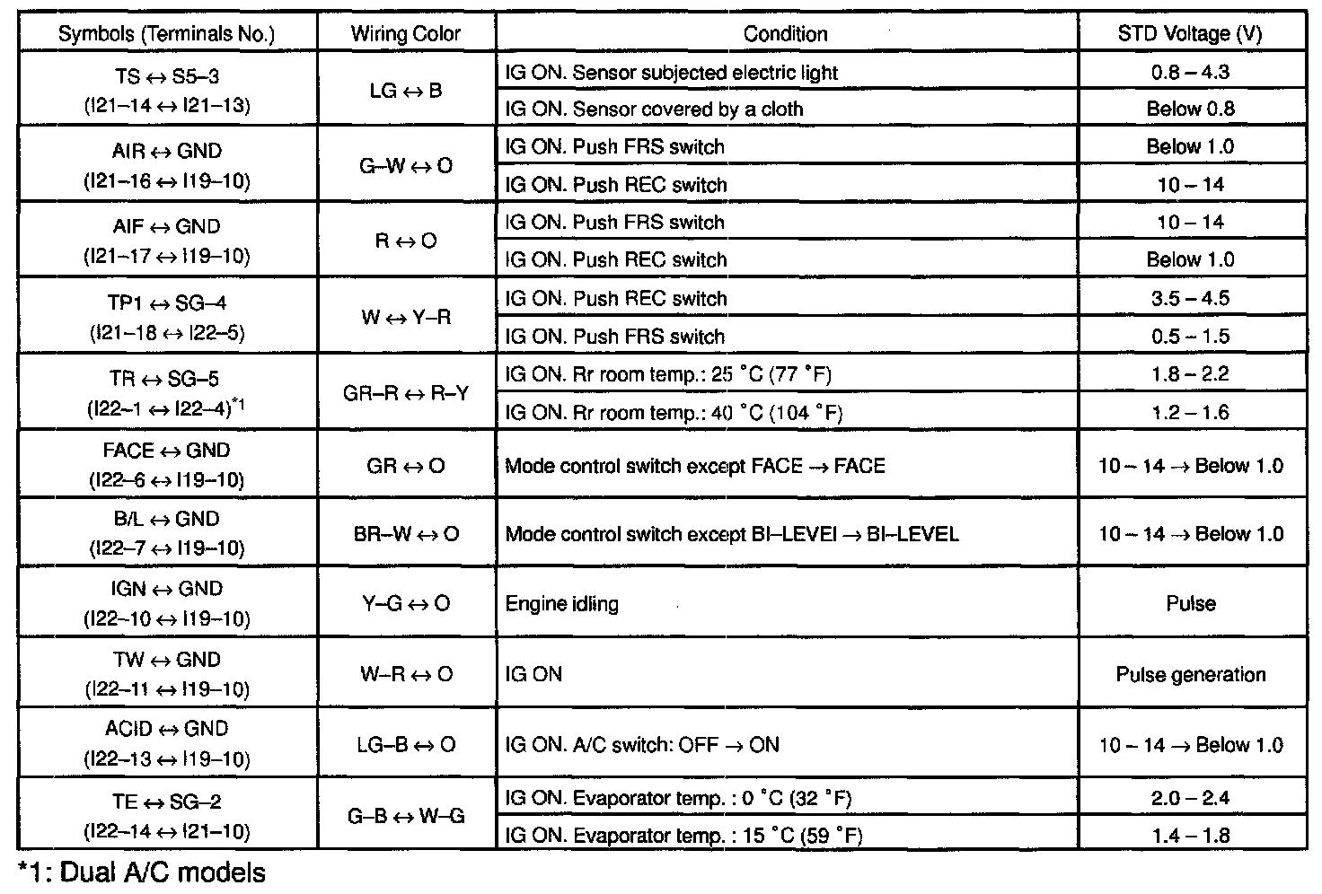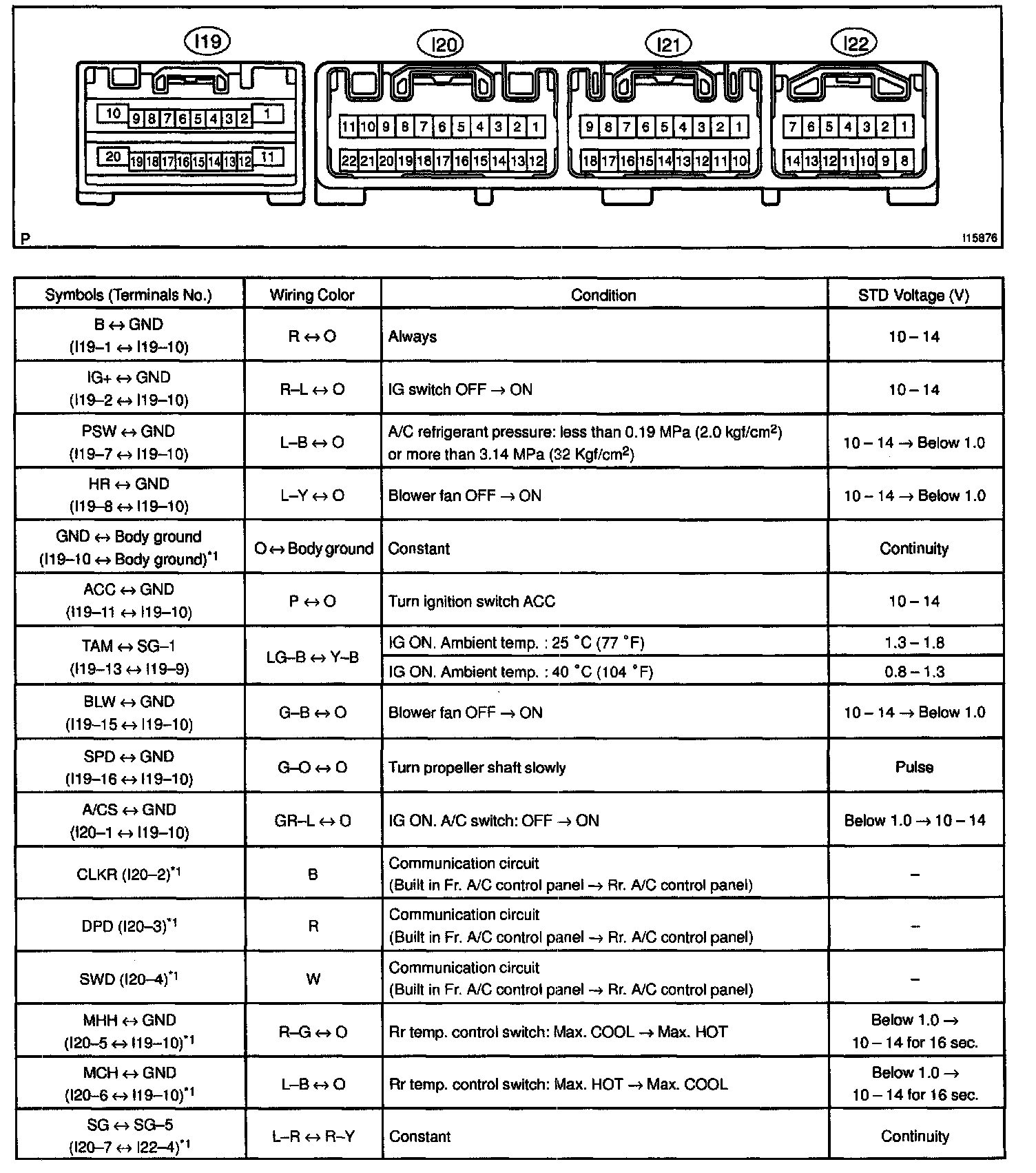 Pinout Values and Diagnostic Parameters