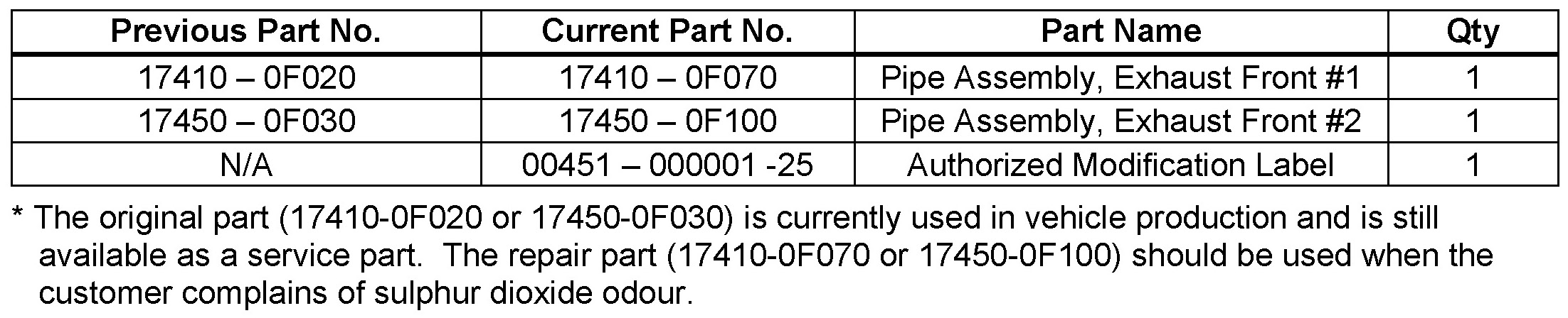 For more complete understanding of the root cause, refer to TSB 1212 "Sulphur Odour from Exhaust" dated March 4, 2003