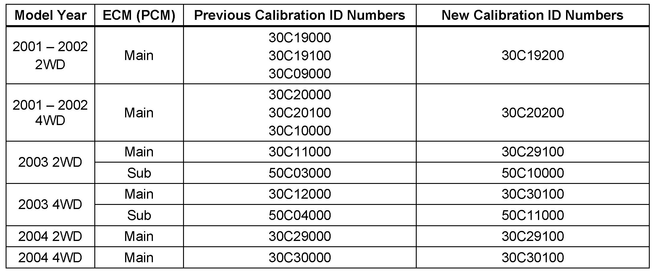 - New ECM (PCM) calibration number