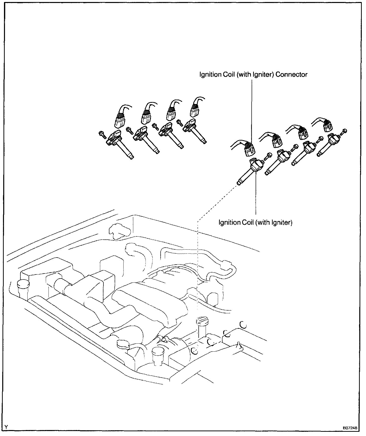 Remove the bolt, and pull out the ignition coil (with igniter). Remove the 8 ignition coils (with igniter).