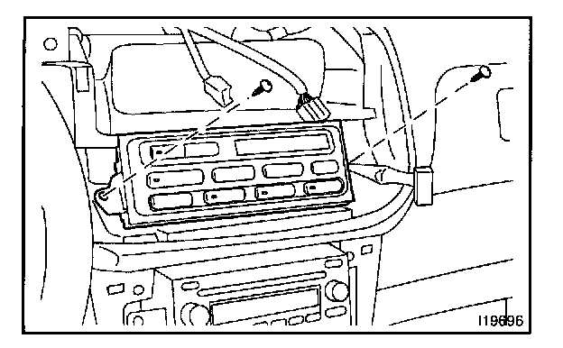 Remove the 2 screws and A/C control assembly, then disconnect the connector.