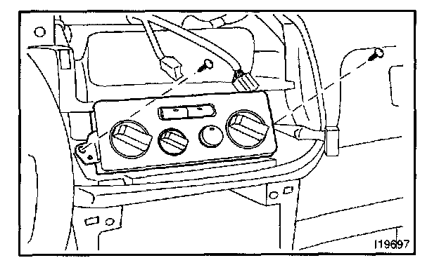 NOTE: Be careful not to bent the mode control cable, when pull out the A/C control assembly.