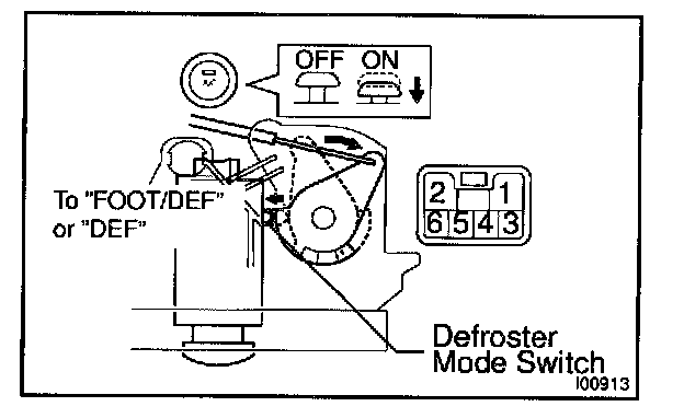 b. Turn the air flow selector to the "DEF", "FOOT/DEF" and "FOOT" position and check that the recirculate switch indicator lights off.