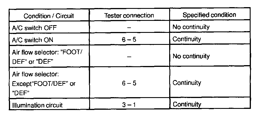 2. INSPECT A/C SWITCH CONTINUITY