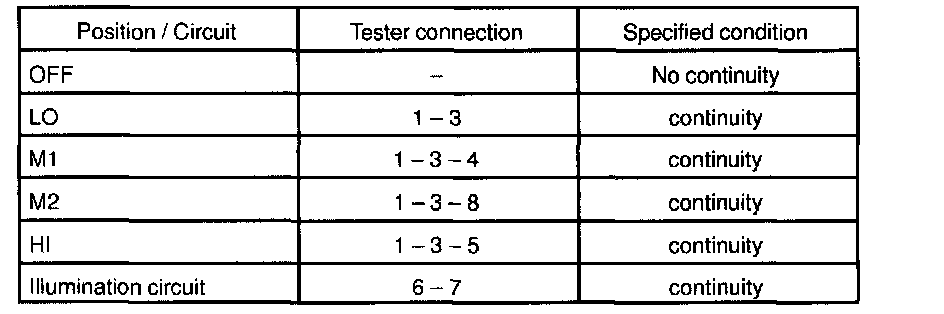 If continuity is not as specified, replace the blower speed control switch.
