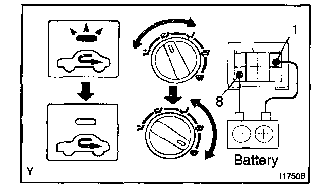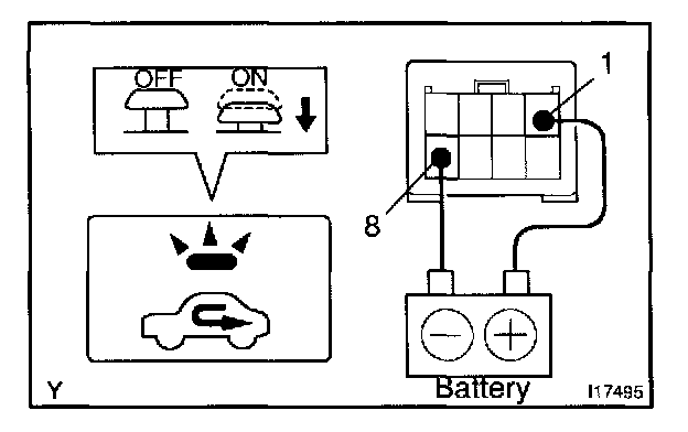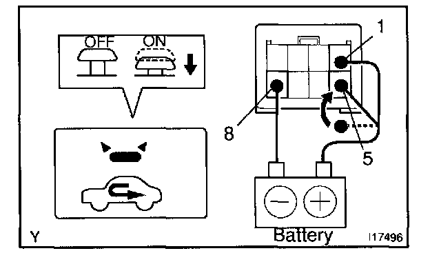 c. Connect the positive (+) lead from the battery to terminal 5 and then check that the indicator dims.