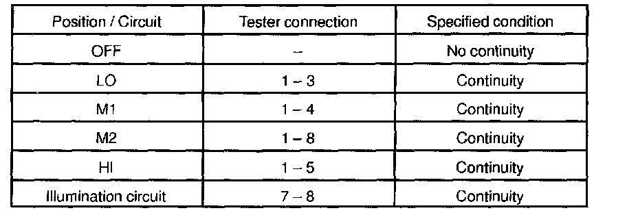 INSPECTION1. INSPECT HEATER BLOWER SWITCH CONTINUITY