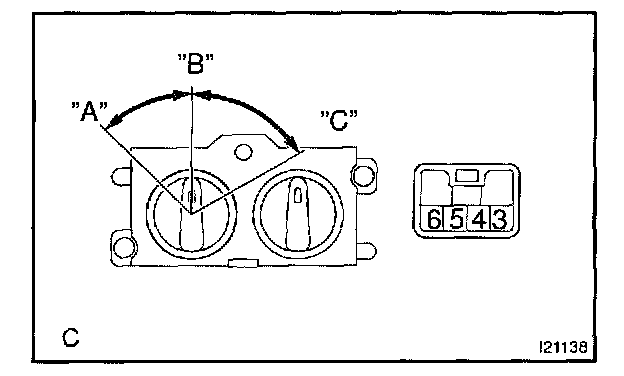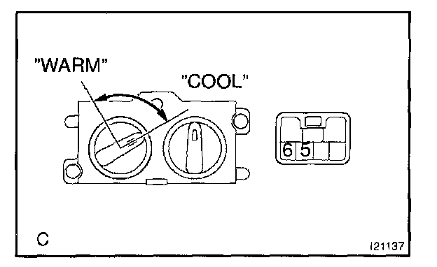 a. Gradually turn the select switch from the "WARM" to "COOL" side, then check that the resistance between terminals 5 and 6 increases from 0 to 3.0 kohms