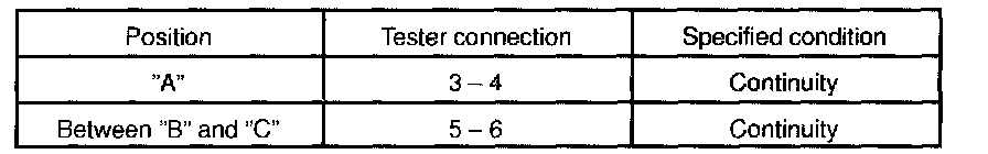 If continuity is not as specified, replace the switch.