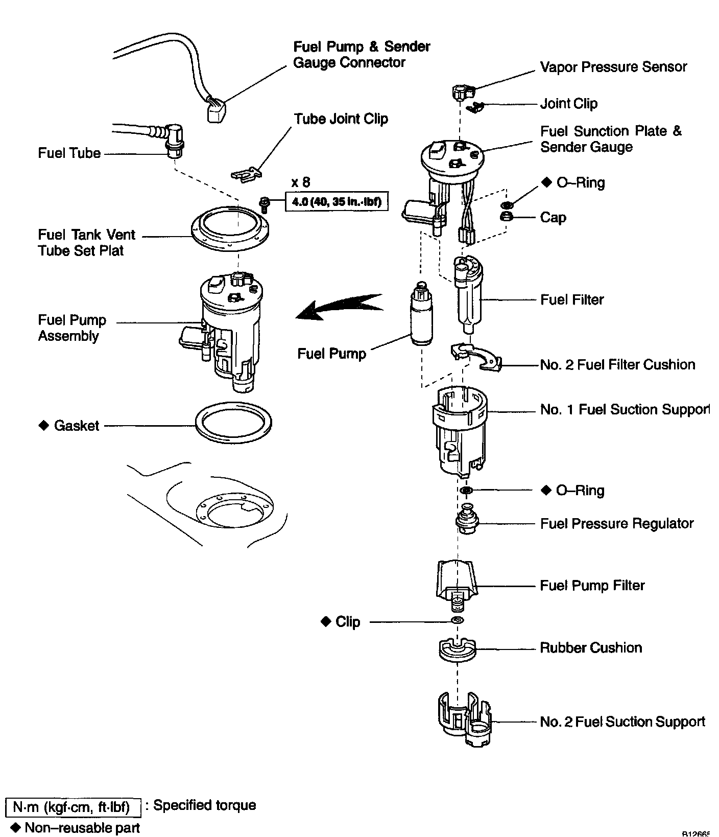 The fuel filter is a part of the fuel pump assembly located inside the fuel tank.
