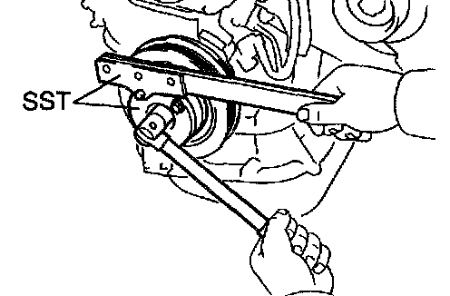 a. Using SST, remove the pulley bolt.