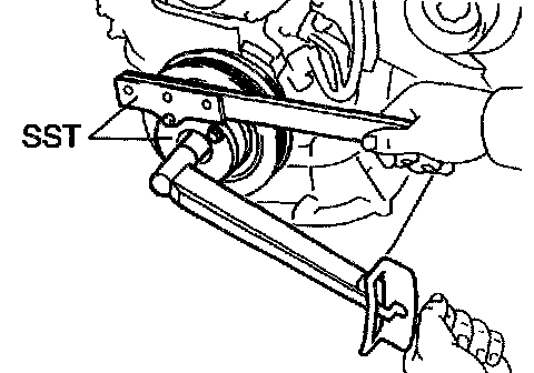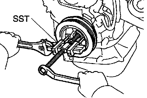b. Using SST, remove the crankshaft timing pulley.