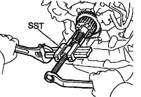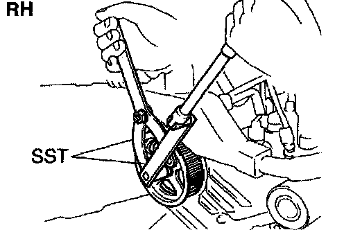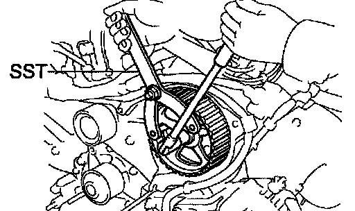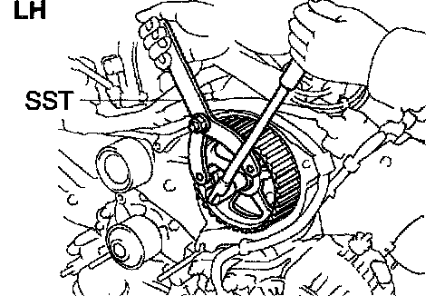 b. Using SST, remove the LH timing pulley.
