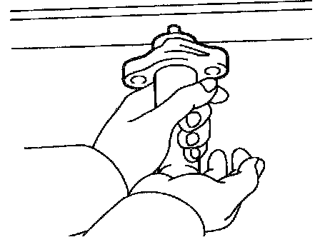 b. Hold the tensioner with both hands and push the push rod strongly as shown to check that it doesn't move. If the push rod moves, replace the tensioner.