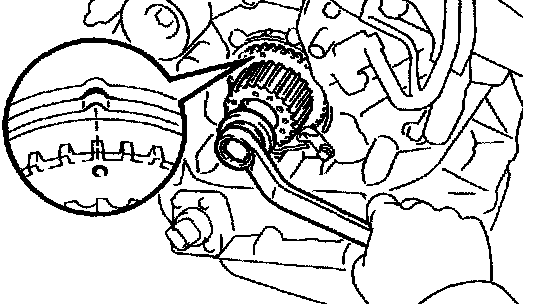 - Turn the crankshaft, and align the timing marks of the crankshaft timing pulley and oil pump body.