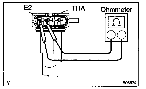 Using an ohmmeter, measure the resistance between terminals THA and E2.