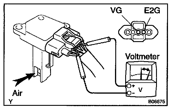 c. Using a voltmeter, connect the positive (+) tester probe to terminal VG, and negative (-) tester probe to terminal E2G.
