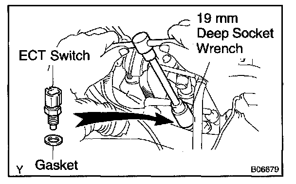 b. Using a 19 mm deep socket wrench, remove the ECT sensor and gasket.