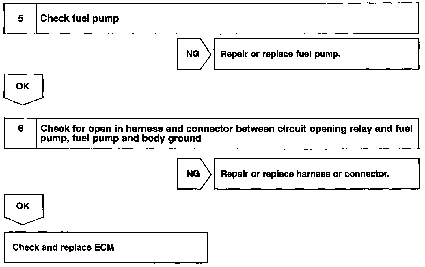 While the NE signal is generated (engine running), the ECM keeps the Tr ON (circuit opening relay ON) and the fuel pump also keeps operating.