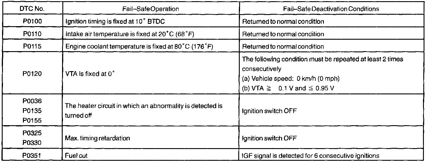 If any of the codes is recorded, the ECM enters fail-safe mode.