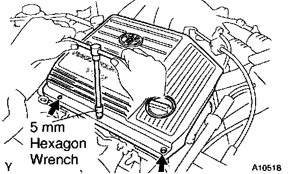 a. Using a 5 mm hexagon wrench, install the V-bank cover with the 3 cap nuts.
