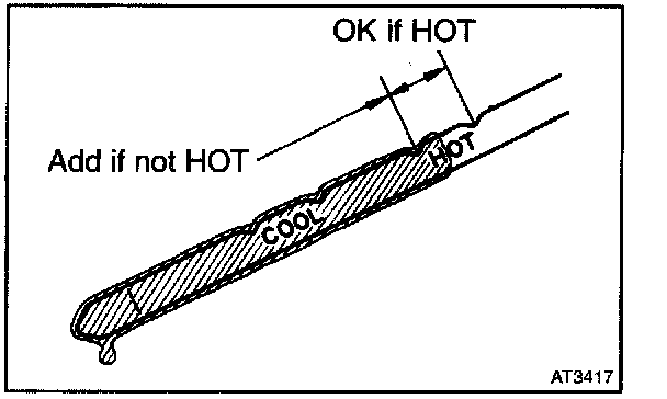 - Only use the COOL range on the dipstick as a rough reference when the fluid is replaced or the engine does not run.