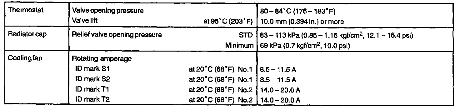COOLING SERVICE DATA:
