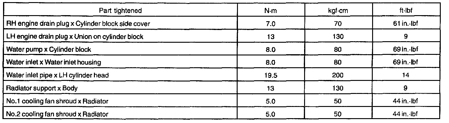 TORQUE SPECIFICATION:
