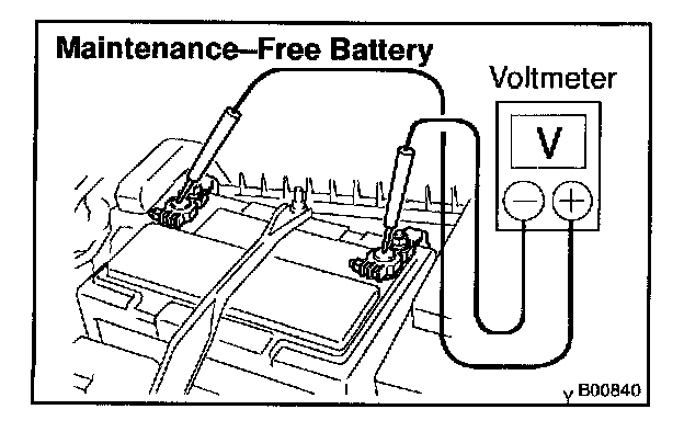If the voltage is less than specification, charge the battery.