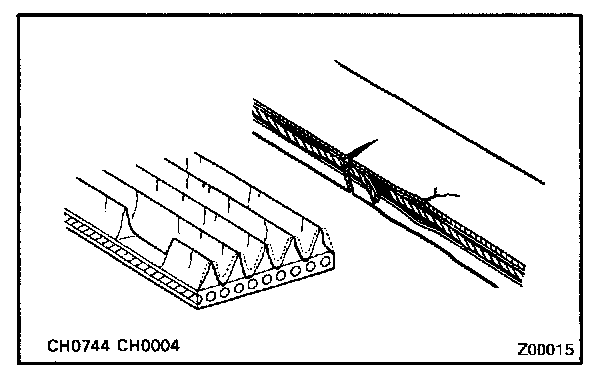 HINT: Cracks on the rib side of a drive belt are considered acceptable. If the drive belt has chunks missing from the ribs, it should be replaced.