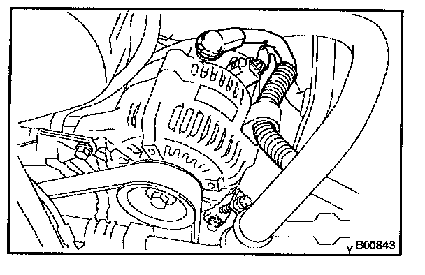 - Connect the positive (+) tester probe of the ammeter to terminal B of the generator.