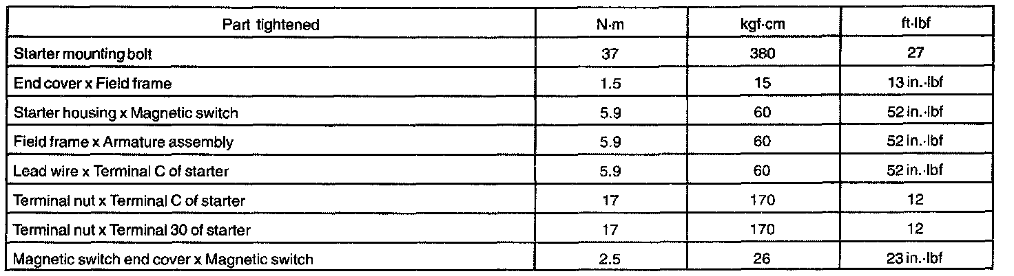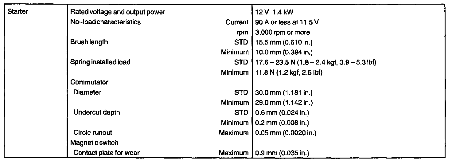 Starting System: Specifications