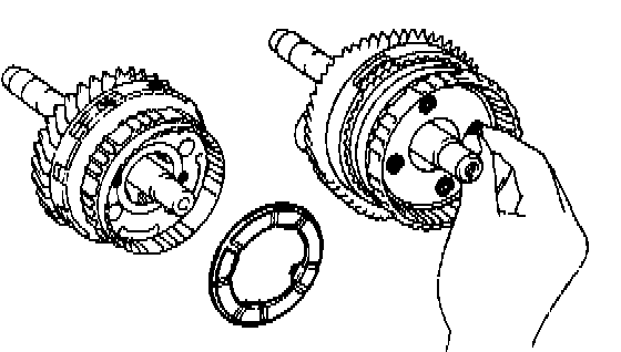 a. Install the gear onto the shaft, and mash the ring gear with the planetary pinions.