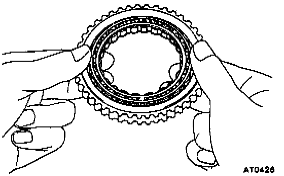 While turning the overdrive planetary gear clockwise, install it onto the overdrive direct clutch.