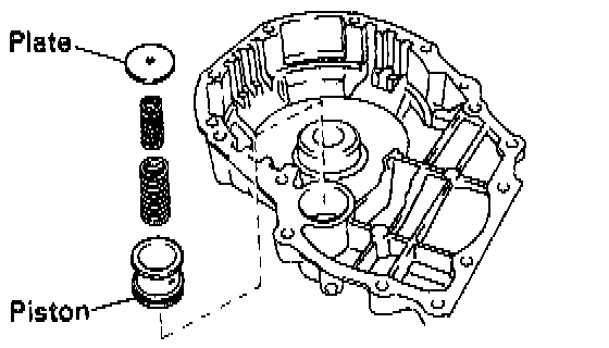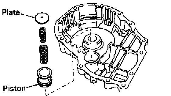 c. Install the accumulator piston, two springs and retaining plate.