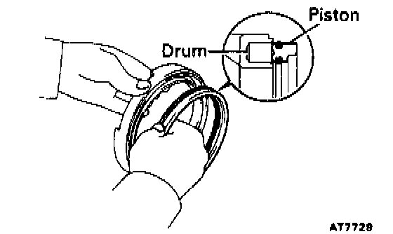 b. Press the piston into the drum, being careful not to damage the O-rings.