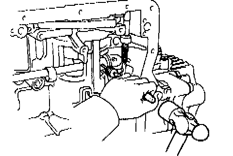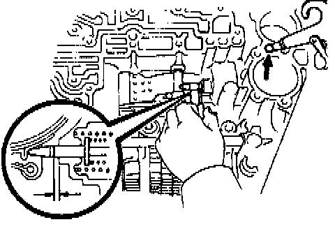 b. Install the pin through the oil pump mounting bolt hole.