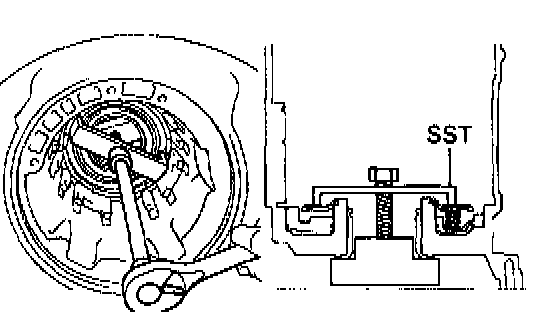 b. Place Special Service Tool (SST), and compress the return spring evenly by tightening the bolt gradually.