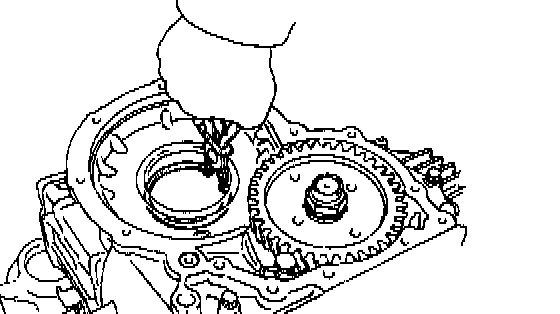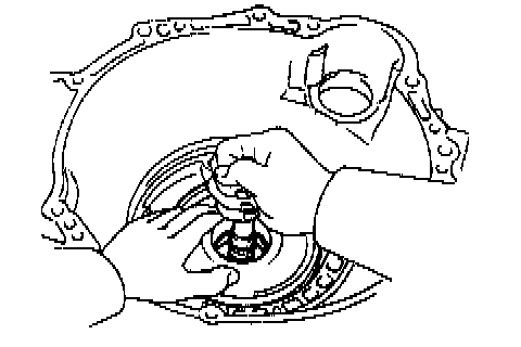 b. Place the oil pump through the input shaft, and align the bolt holes of the pump body with the transmission case.