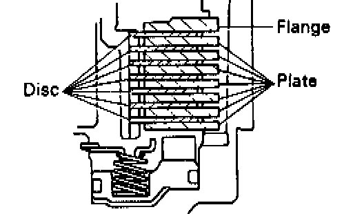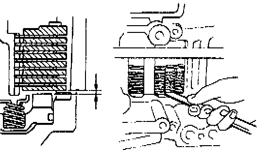 b. Using a filler gauge, check that pack clearance of the first and reverse brake.