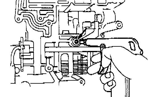 d. Install the manual valve shaft to the transmission case through the manual lever.