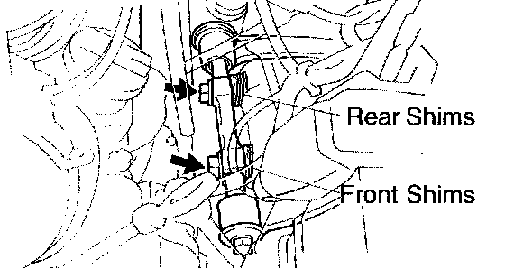 b. Adjust the camber and caster by adding or removing shims (See adjustment chart).