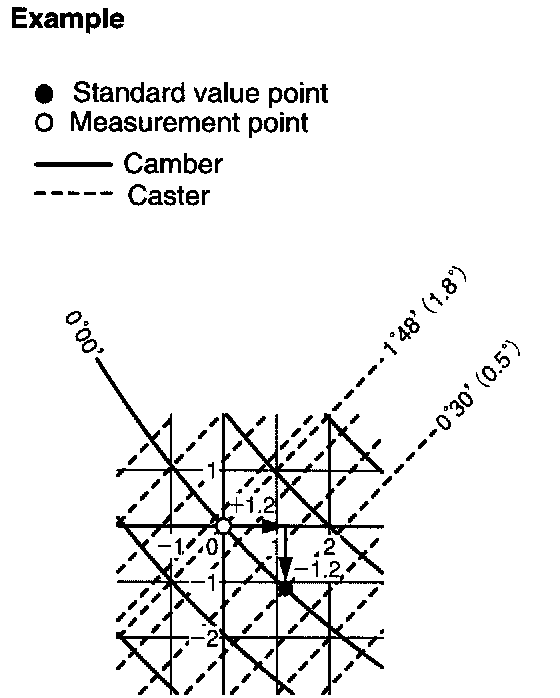 HINT: Try to adjust the camber and caster to the center of the specified values.